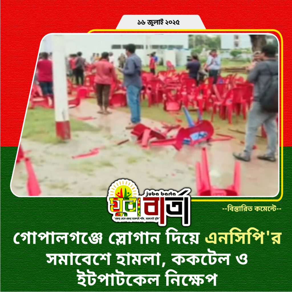 মাসজুড়ে জাতীয় নাগরিক পার্টির (এনসিপি) কেন্দ্রীয় কর্মসূচি জুলাই পদযাত্রাকে কেন্দ্র করে গোপালগঞ্জ সদরে পুলিশের গাড়িতে আগুনে, উপজেলা নির্বাহী কর্মকর্তা (ইউএনও) গাড়ি বহরে হামলা-ভাঙচুরের পর এবার সমাবেশের মঞ্চে হামলা করেছে নিষিদ্ধ ছাত্রলীগের নেতাকর্মী ও সমর্থকেরা।